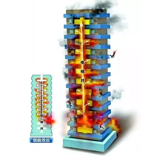电缆井从建筑物底部到顶部,如果没有做好防火封堵,形成烟囱效应,加速火势向上层蔓延,浓烟很容易在楼道聚集。